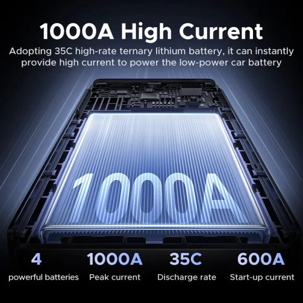 Safety Protection: UGREEN jump starter power pack has safety protection functions including reverse connection, reverse charging, short circuit, high temperature, overcurrent, overvoltage, undervoltage, and low battery protection